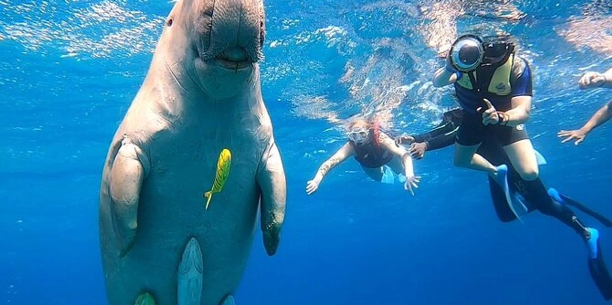 Experience one of the most beloved excursions favored by tourists! Embark on a day trip to the horseshoe-shaped Marsa Mubarak Bay, teeming with sea turtles, abundant marine life, and a breathtaking coral reef. A unique highlight is the chance to witness the majestic dugong (sea cows), in its natural environment. Don't miss out on this extraordinary opportunity!